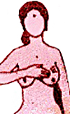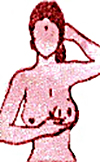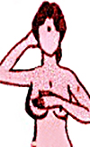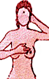First you stand erect in front of a mirror and check both the breasts for anything unusual - asymmetry, dimpling, puckering, discharge from nipple.